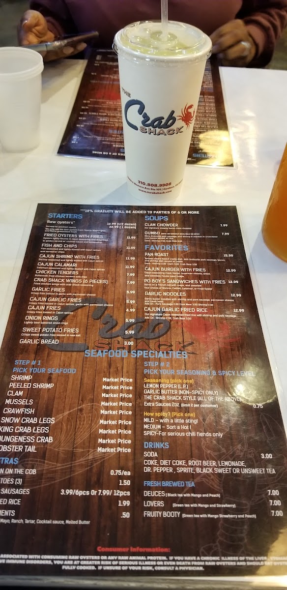 Welcome to The Crab Shack Gardena, where our menu is a treasure trove of seafood delights that will tantalize your taste buds! Nestled at 1451 Artesia Blvd Ste #1 in Gardena, CA, our offerings are crafted for seafood lovers and adventure seekers alike. Indulge in our specialties like the succulent Snow Crab Legs, hearty Gumbo, and mouthwatering Clam Chowder – each dish designed to transport you to flavor paradise. Don’t miss our signature Michelada to complement your meal, or dive into the crispy Fried Calamari and Fries and Shrimp Poboy. Whether you're craving the freshness of Raw Oysters or the comforting richness of Garlic Noodles with Crab Meat, every bite at The Crab Shack is a celebration of coastal cuisine. Bring your appetite and get ready to feast on the best seafood around!
